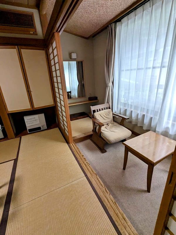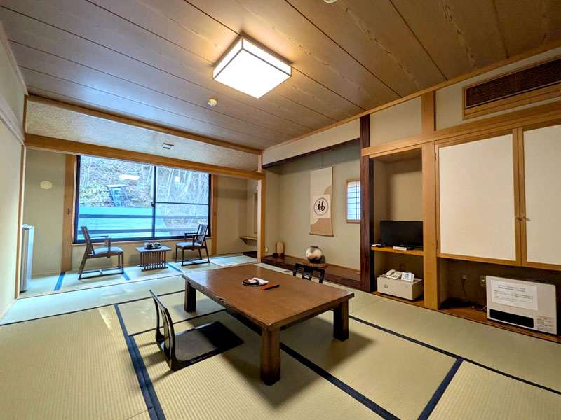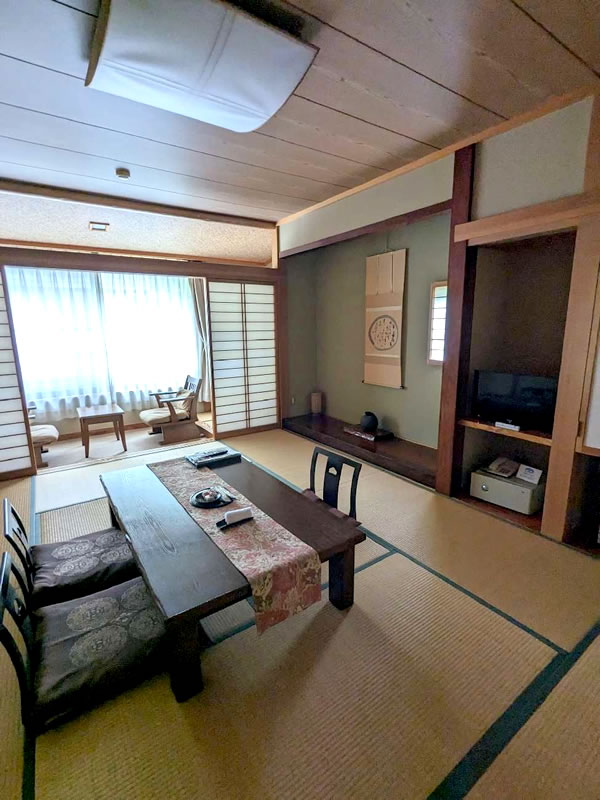 旅館の一部を改修しました。 客室を和モダンスタイルにリニューアルしました。 広縁との段差をなくしフラットな畳敷にしたことで、お部屋が広く感じられます。 お食事処を広くし、床も畳敷からフローリングに。 その他脱衣室やお風呂等も改修しました。